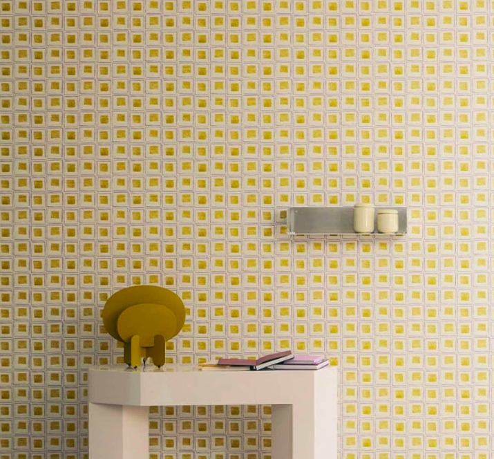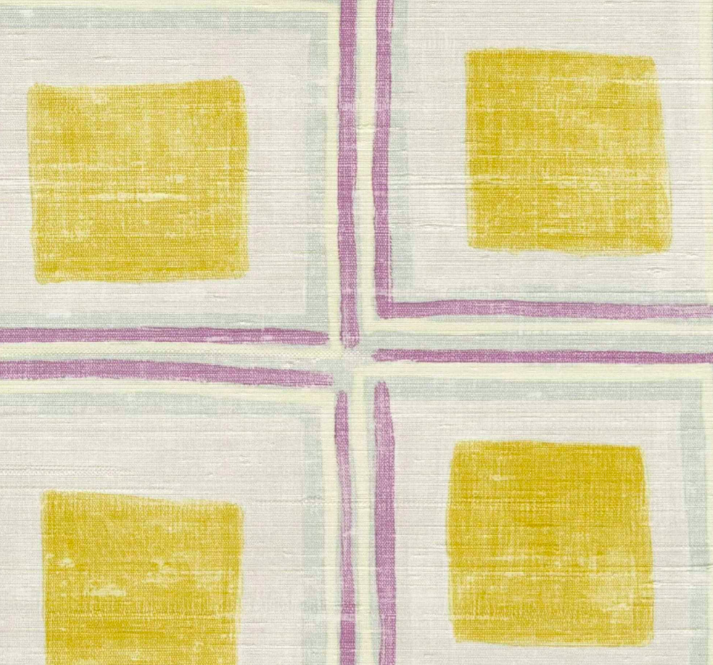 Sigil by Élitis blends hand-painted squares with a soft silk-like sheen, creating a playful and refined geometric pattern for modern, artistic interiors.