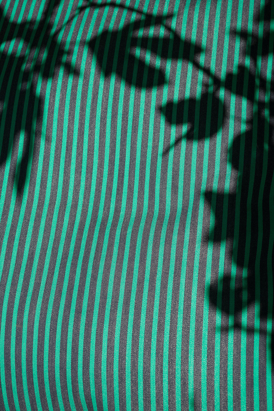 Two-tone striped acrylic fabric with excellent colourfastness and water-repellent properties. Mold-resistant, washable, and durable with a Martindale rating of 24,000. Perfect for outdoor furniture and upholstery.