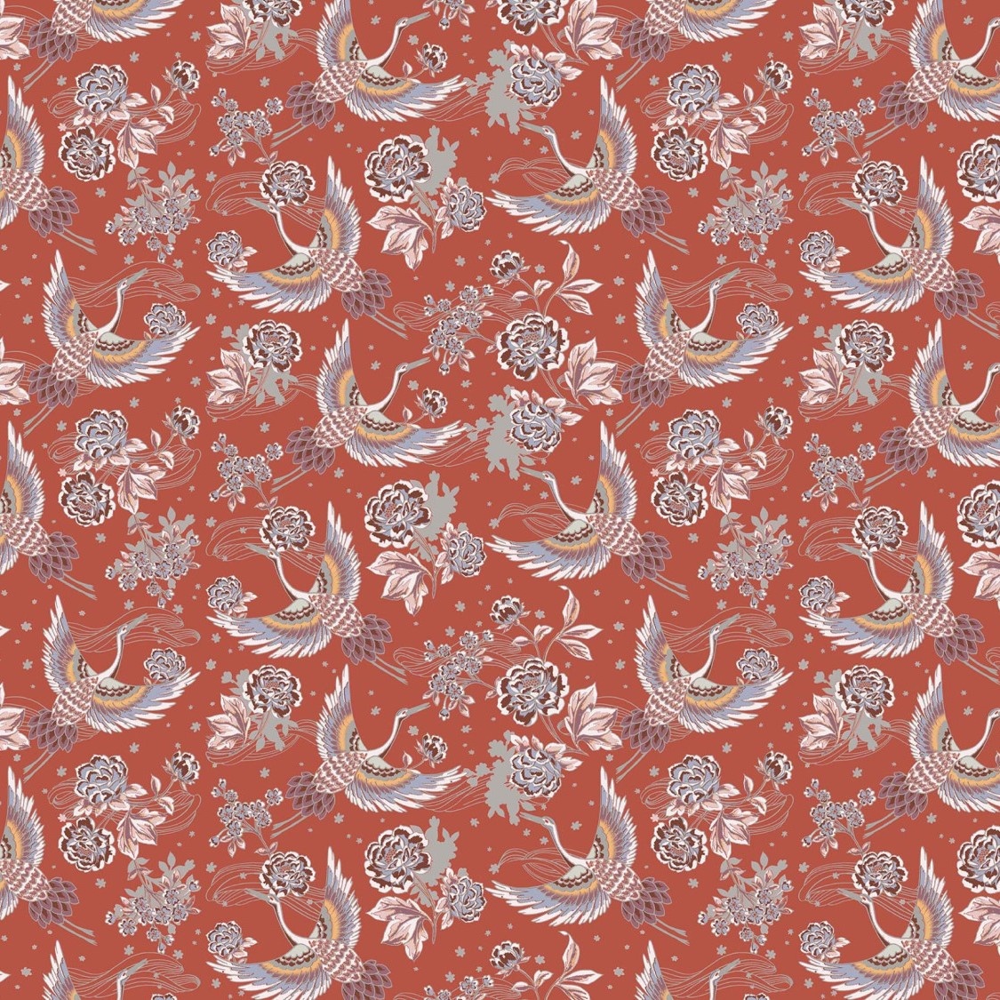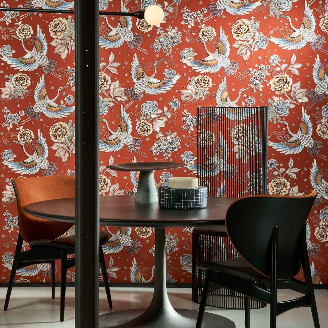 The Takara - Crane - Orange of Arte is sold per rol of 100cm. This wallpaper has a width of 133cm and is made from Textile wall covering on fleece quality. Wallpaper rolls can always be returned within 30 days.