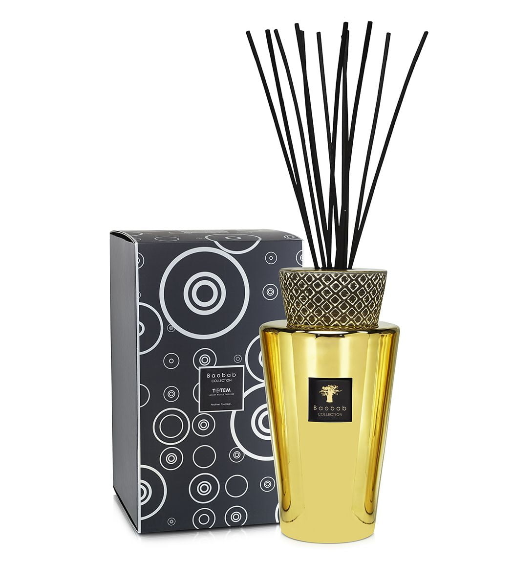 A jewel in your home, the Totem Aurum perfume diffuser is hand-painted by our glass craftsmen with precious gold. A piece of tricolor ceramic has been placed on the top of the bottle and this has called upon the dexterity of our ceramic craftsmen who have mastered various enameling techniques. The perfume of a subtle blend of Arabian jasmine and musk takes you on a journey reminiscent of the grace of Asia and the mystery of the Middle East.