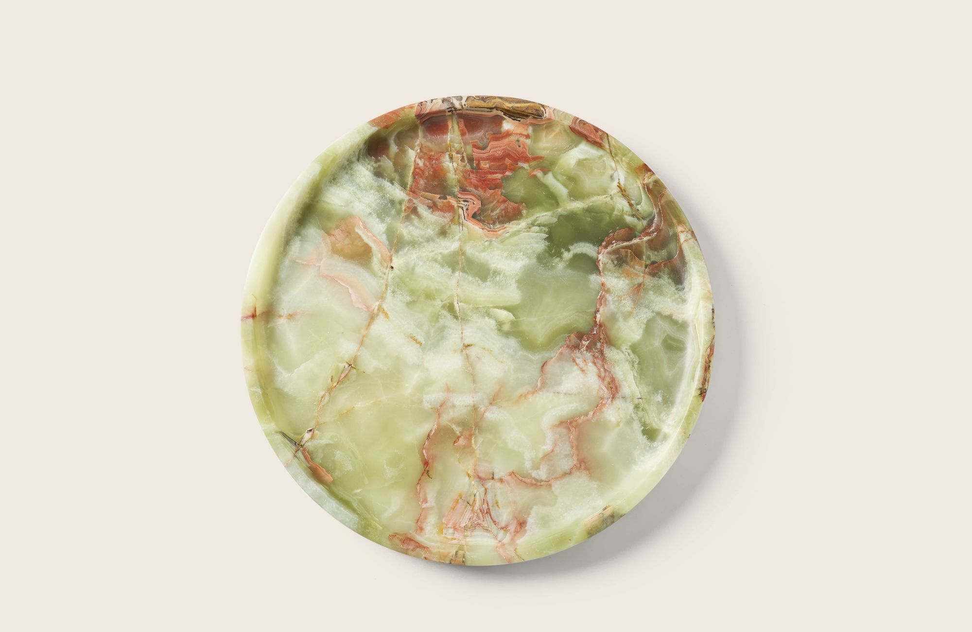 The Zaconi Tray Livelli combines the beauty of natural onyx with sculptural design. Every tray features unique veining and warm tones, giving it the character of a refined art piece. Its layered silhouette adds dimension and elegance, making it a standout in any interior.