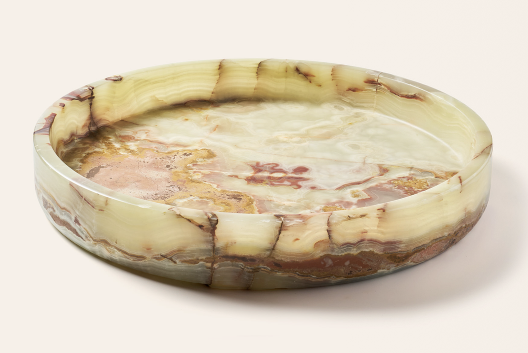 The Zaconi Tray Livelli High Edge blends natural onyx with thoughtful, sculptural design. Its elevated edges create depth and presence, turning everyday objects into a curated display. With rich veining that makes each tray one-of-a-kind, it stands as a true piece of functional art.