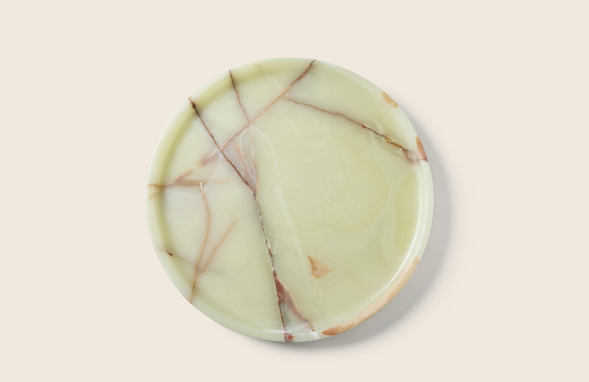 The Zaconi Tray Livelli - where pure natural stone meets design. Carved from richly variegated onyx, this tray is a statement of elegance. The subtle, layered shapes create depth and tranquility, as if you were bringing a small sculptural work of art into your home.