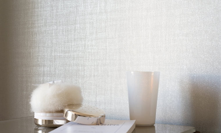 The wallpaper has the look of luxurious textiles with a high-gloss finish.