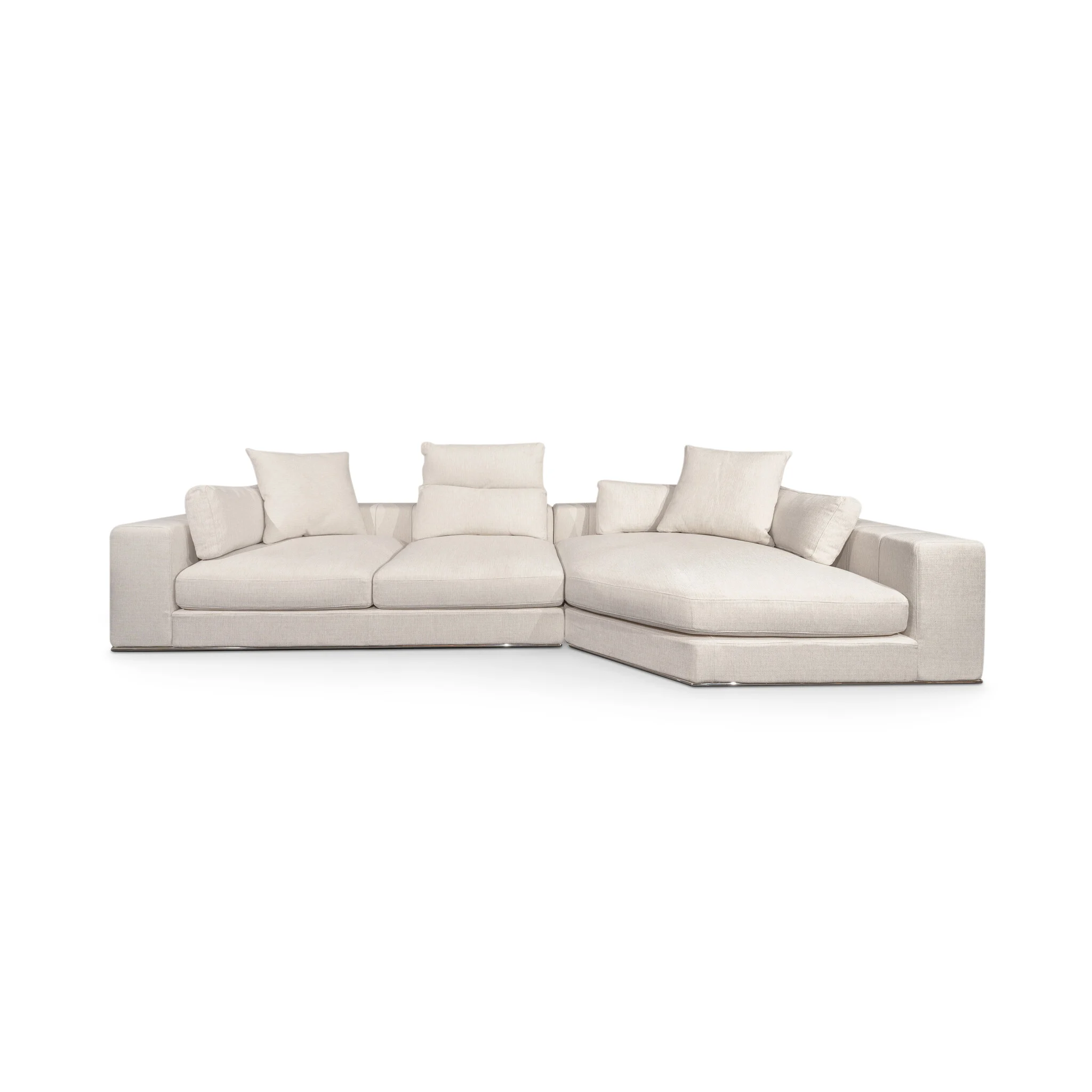 This modern designer sofa is upholstered in a soft and durable canvas weave fabric that provides a stylish, natural look. The rich texture and neutral color make this sofa a timeless focal point in your interior.