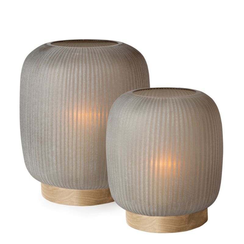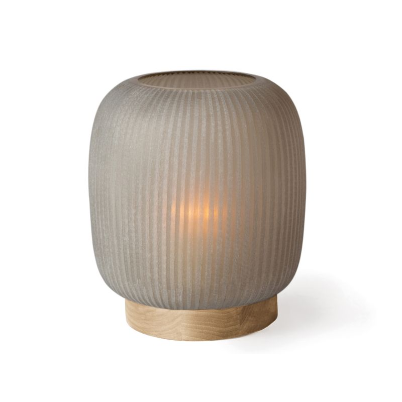Villeta Lantern M - Base Oak / Glass Smokegrey - 25cm