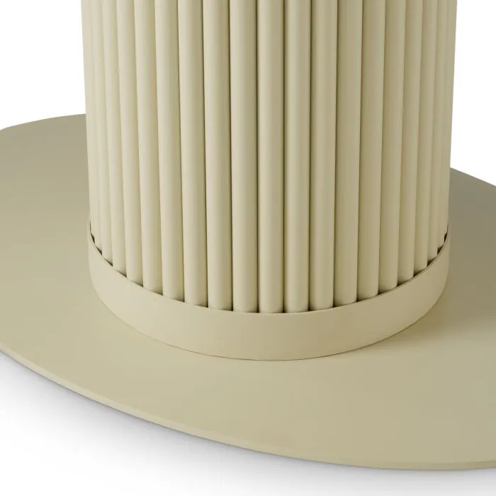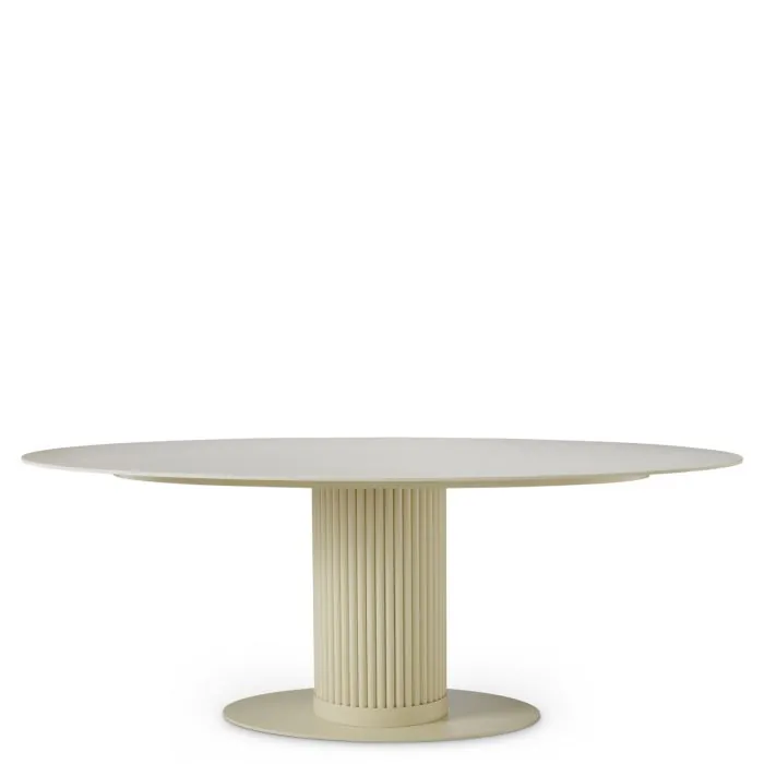 The Volterra Oval Outdoor Dining Table with sand finish and cream ceramic top combines natural elegance with durable materials. A sophisticated dining table that brings style and functionality to luxurious outdoor spaces.