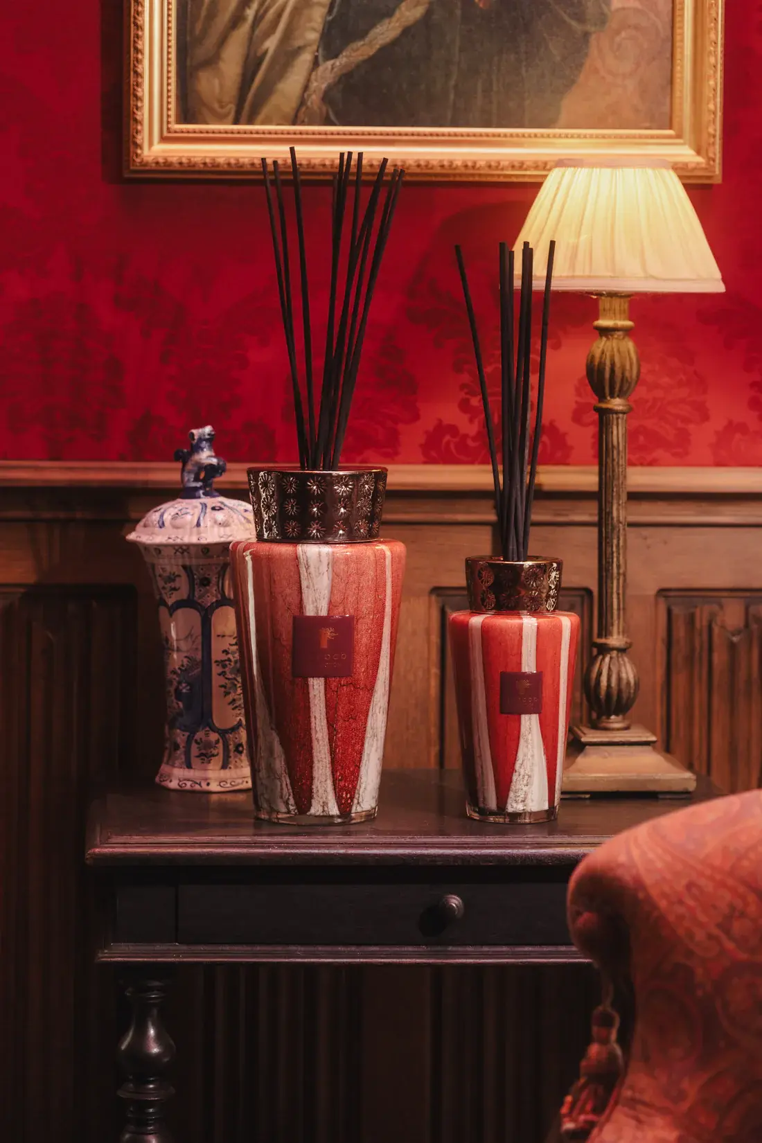 The Baobab Woods Risoud Totem 5L diffuser is a unique artwork in intense red glass, inspired by the majestic Risoud forest, that brings warmth and elegance to your interior.
