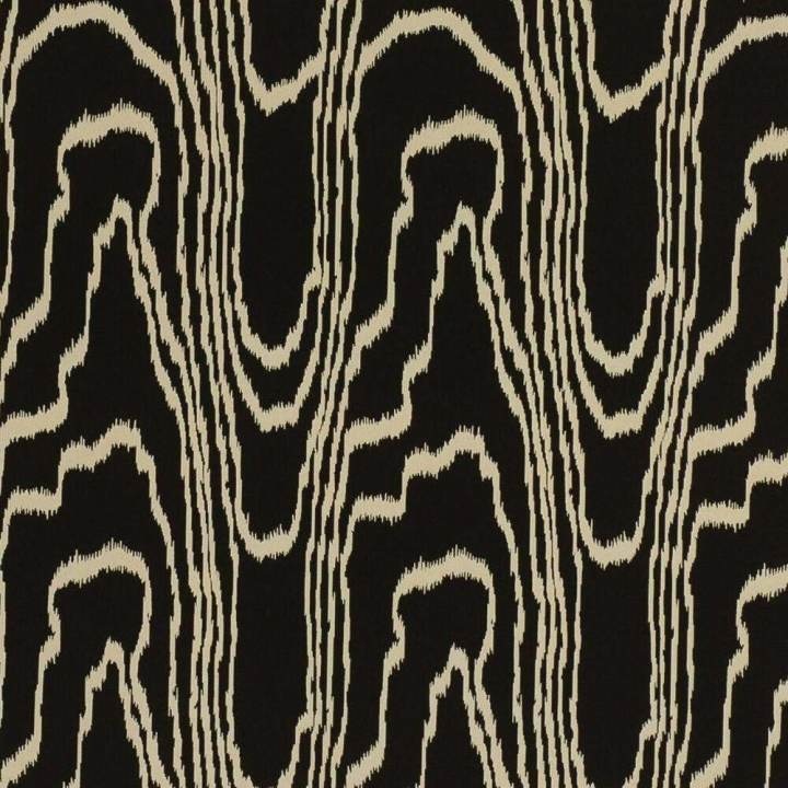 Behang uit de Agate collectie van Kelly Wearstler toont een gestyleerde weergave van grote houtnerven aan.