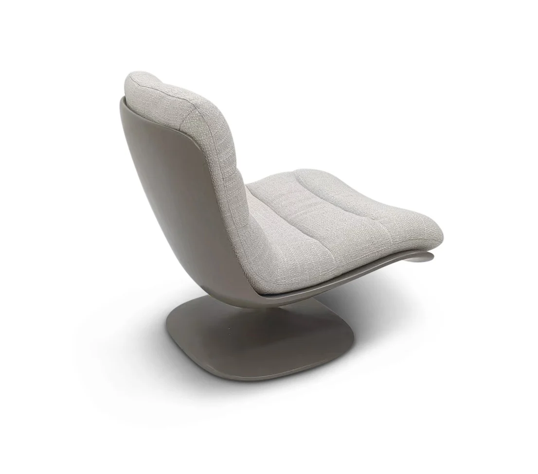 Zacht foam en een bekleding van luxe Italiaanse geweven stof zorgen voor een comfortabele zitervaring, ideaal voor lange avonden ontspannen. Dankzij het geïntegreerde swivel systeem draait de stoel soepel mee met elke beweging — functioneel én stijlvol.