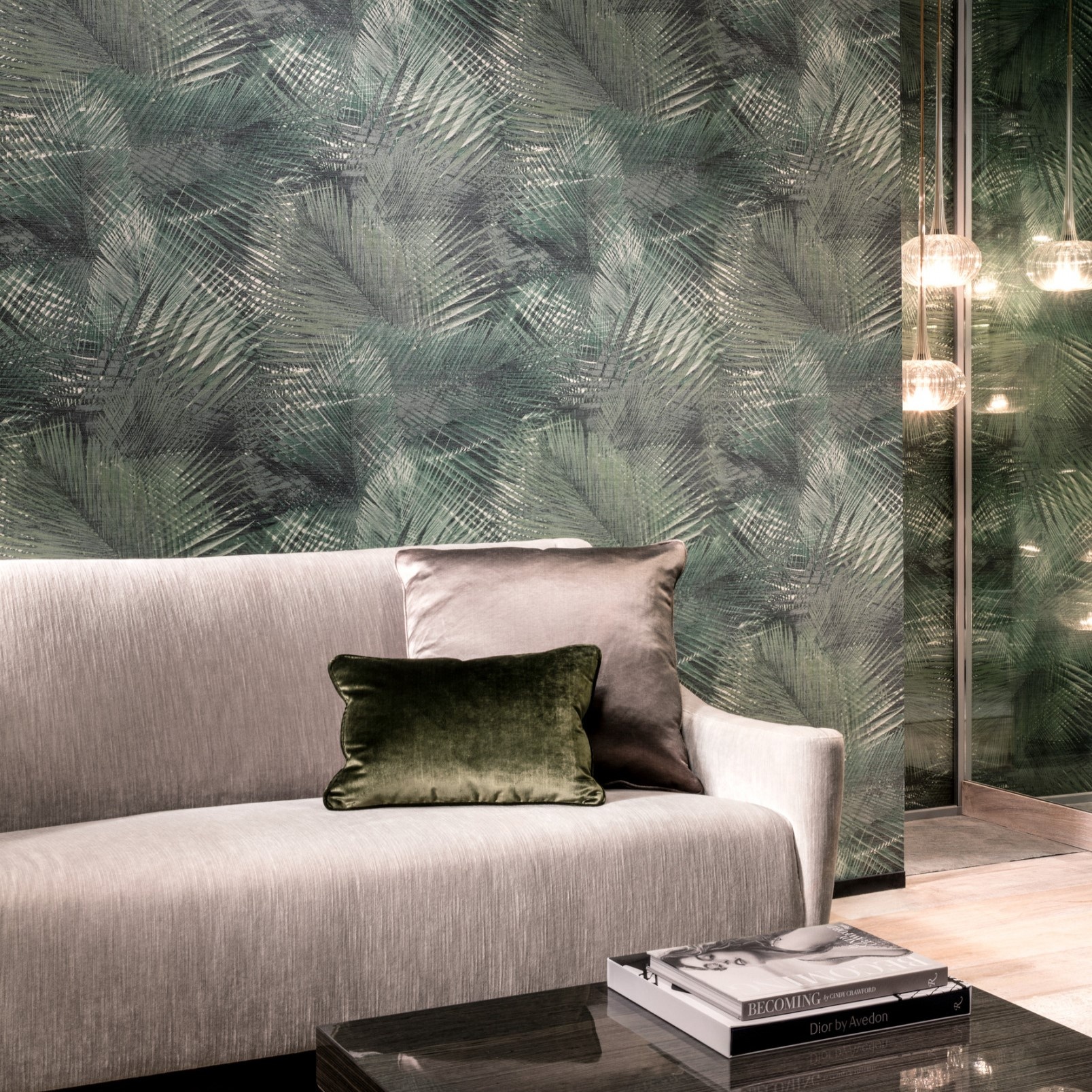 De palmboom maakte het afgelopen jaar een evolutie door van populair tropisch figuur tot stijlvol element in verfijnde interieurs. Shield, de gedetailleerd uitgewerkte print van palmbladeren roept botanische sferen op.