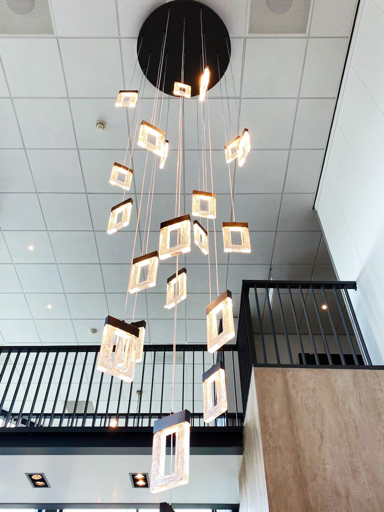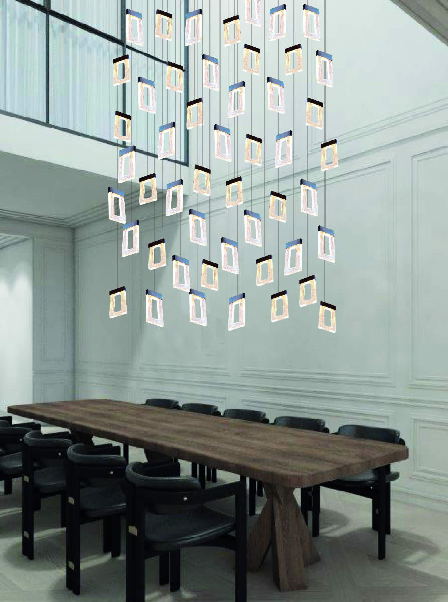 Net als Bel Air is de Bel Square uitermate geschikt voor gebruik in hoge ruimtes, een vide of boven de eettafel. De Bel Square is verkrijgbaar per stuk, waardoor het mogelijkheid is om een eigen compositie samen te stellen.