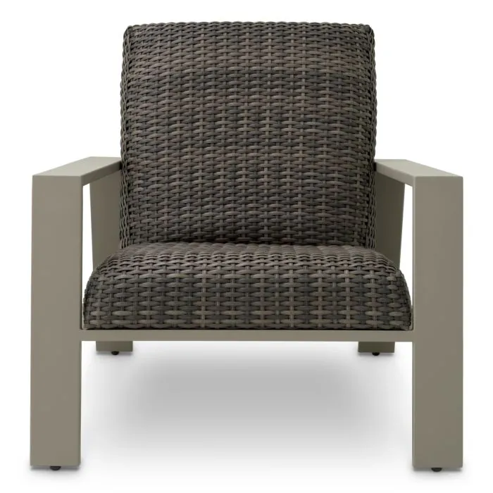 De Belle Vue Outdoor Chair in grey faux rattan combineert verfijnde elegantie met duurzaam comfort. Jij creëert een stijlvolle en uitnodigende zitplek voor jouw tuin of terras.