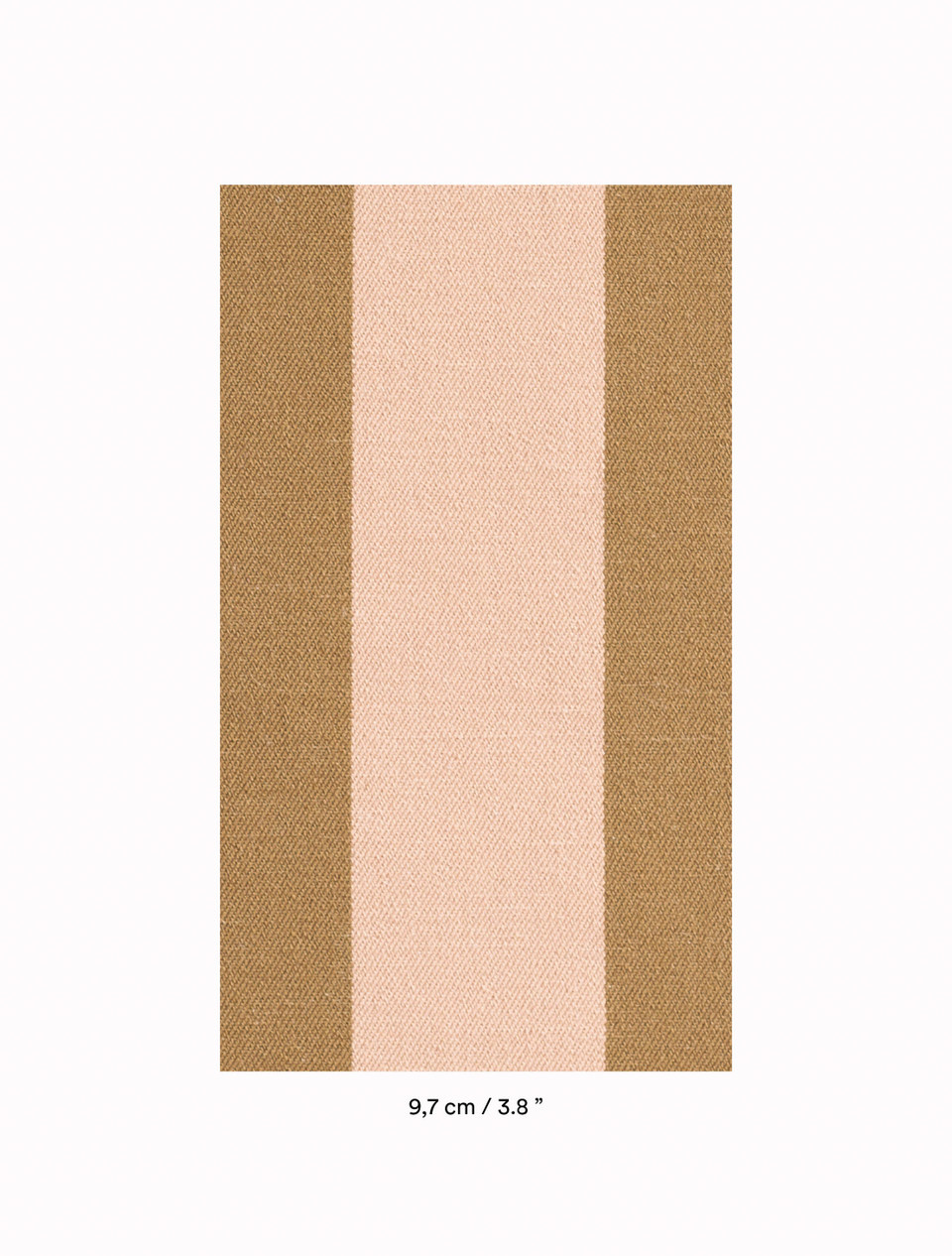 Deze stijlvolle stof geeft de klassieke brede streep een moderne update met krachtige en verfijnde kleurcombinaties. De combinatie van een linnen inslag en katoenen ketting zorgt voor een aangenaam frisse textuur en een soepel vallende stof die luxe uitstraalt.