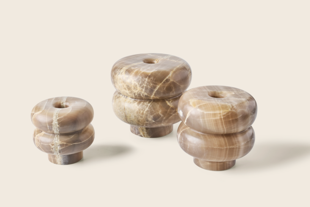 Gebruik de Sora Beignet als kaarshouder of puur decoratief accent op een salontafel, dressoir of nachtkastje. Zodra je een kaars plaatst, verspreidt het onyx een zachte, warme gloed die je interieur direct transformeert tot een serene, luxe omgeving.