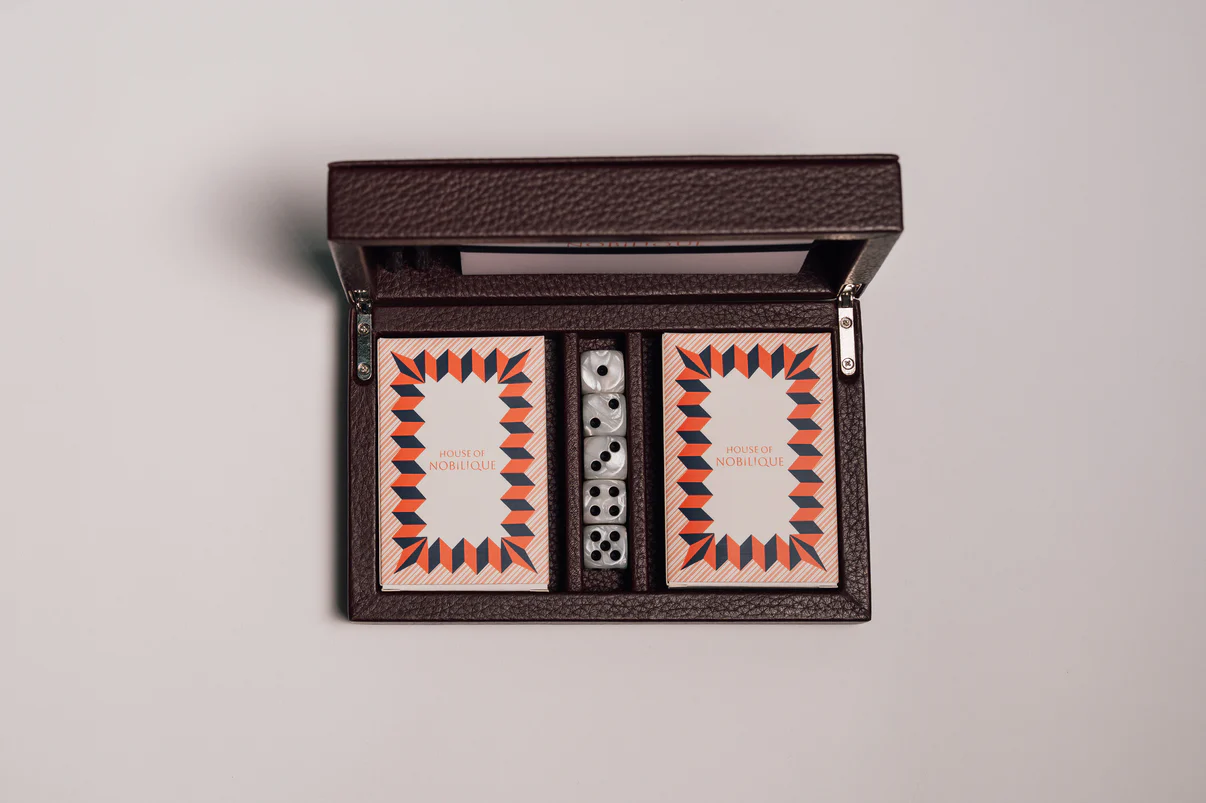 Er zijn spelavonden… en er zijn spelavonden met allure. Met de Card Box Burgundy breng jij warmte, klasse en karakter naar tafel. Deze luxe, handgemaakte lederen box bevat speelkaarten, dobbelstenen en een Yahtzee-notitieboek – stijlvol samengebracht in een compact ontwerp met magnetische sluiting.