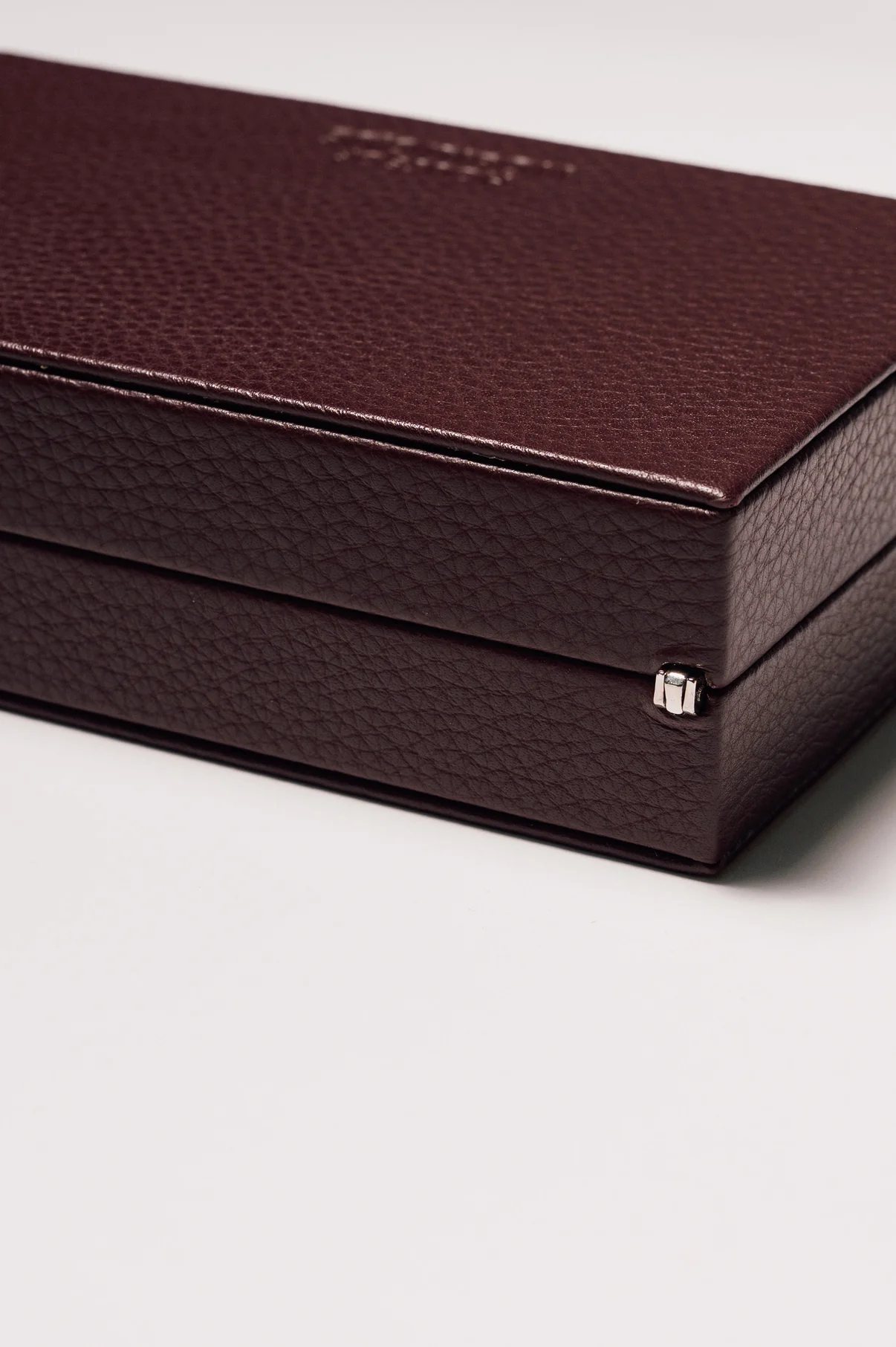 Card Box Burgundy – Luxe Lederen Speelkaarten Box met Dice & Yahtzee Notitieboek