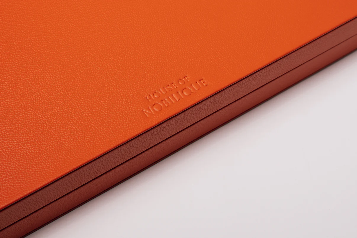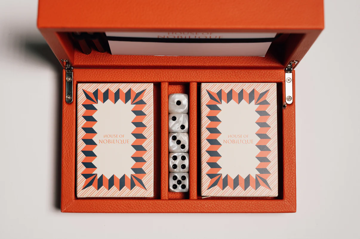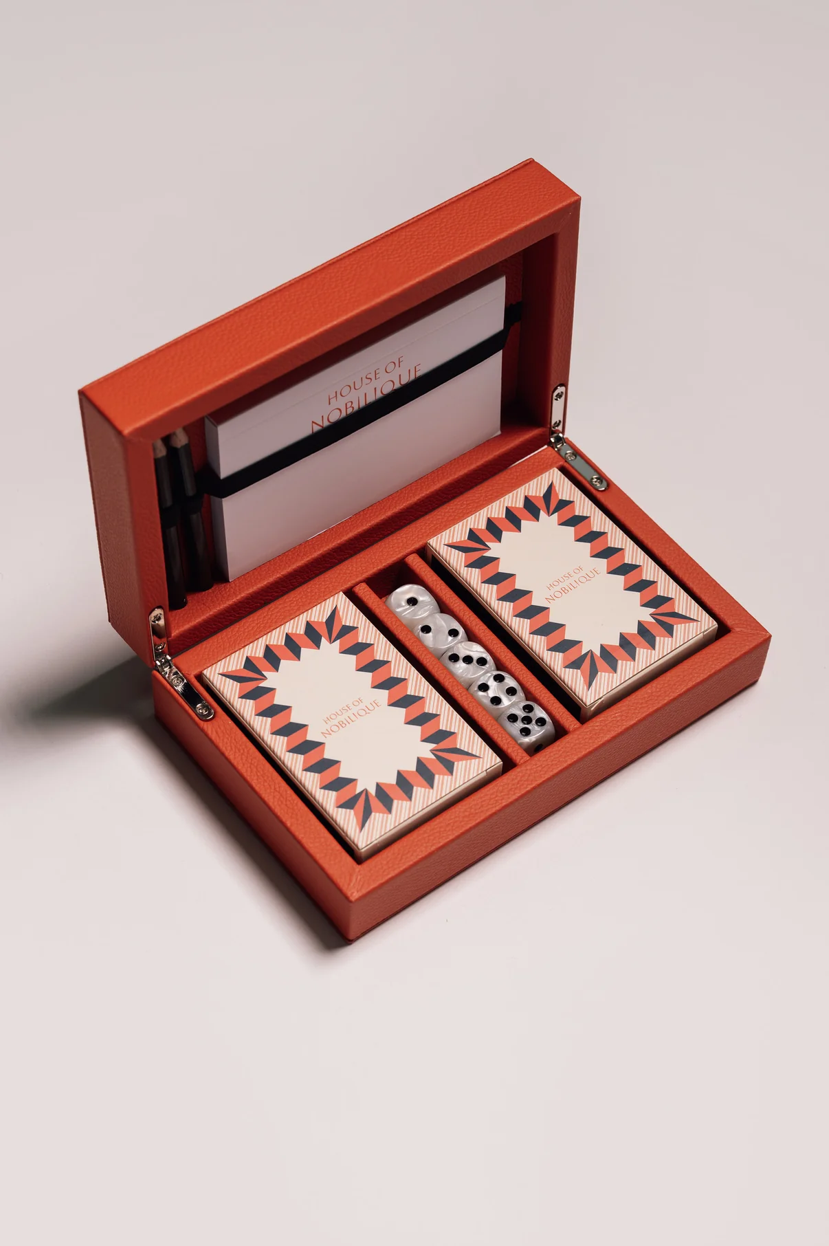 De warme oranje tint straalt creativiteit, lef en stijl uit. Gemaakt van authentiek leer met een natuurlijke nerf voelt deze box rijk en premium aan. Het is niet zomaar een spelset. Het is een statement piece dat direct de aandacht trekt op jouw tafel.