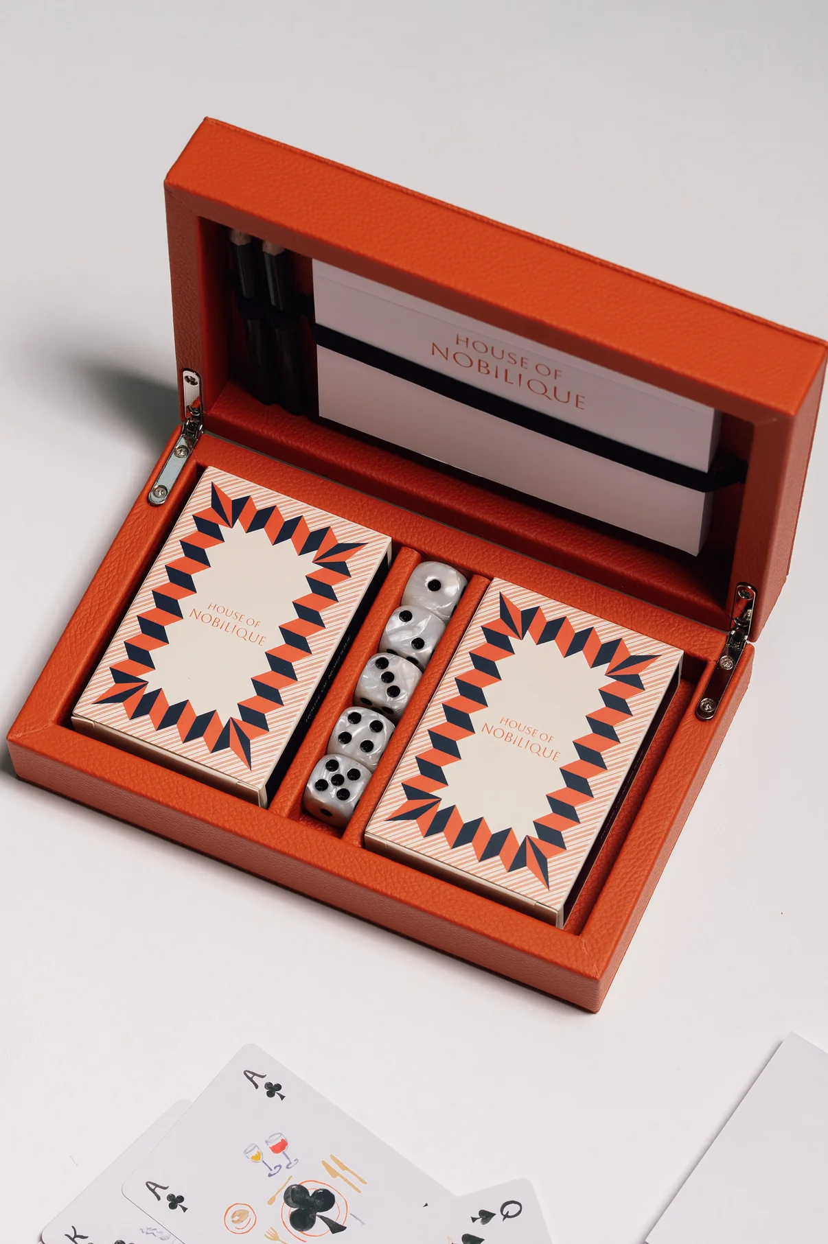 Card Box Orange – Luxe Lederen Speelkaarten Box met Dice & Yahtzee Notitieboek