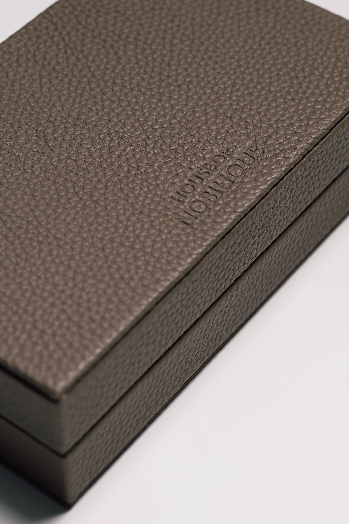 Gemaakt van authentiek leer met een natuurlijke nerf, biedt deze box niet alleen functionaliteit, maar ook een tijdloze uitstraling die perfect past in elk interieur. Het compacte formaat maakt het eenvoudig mee te nemen naar vrienden, familie of een weekendje weg.