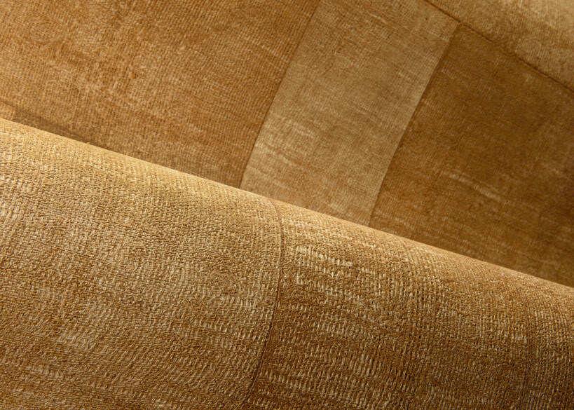 Ontdek een lappendeken van onregelmatige rechthoeken, met imperfecties die het patroon extra charme geven. Het behang is gebaseerd op grof geweven linnen.