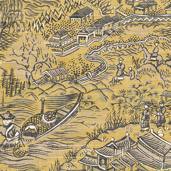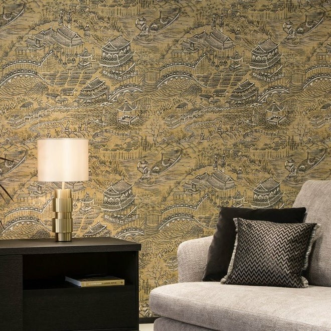 Scenery Behang ARTE lijkt met haar Japanse pittoreske plattelandsportret wel uit een historisch boek te komen. Het behang uit de Curiosa collectie is geprint op een zachte linnenstructuur wat het behang een extra authentieke uitstraling geeft.