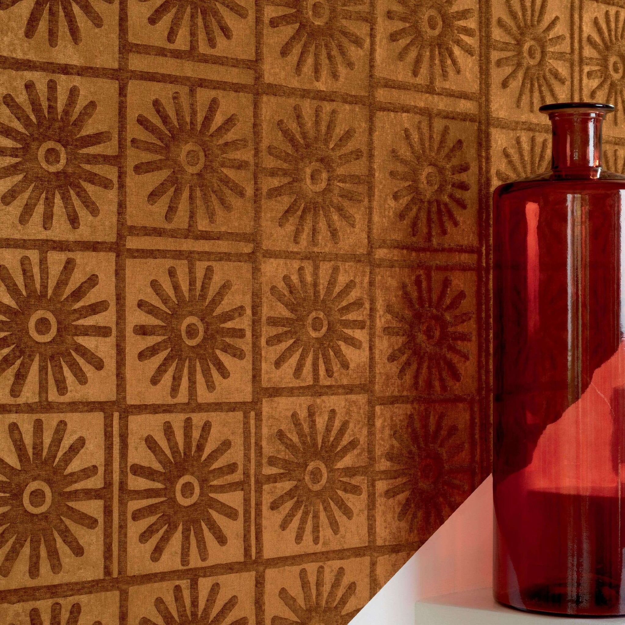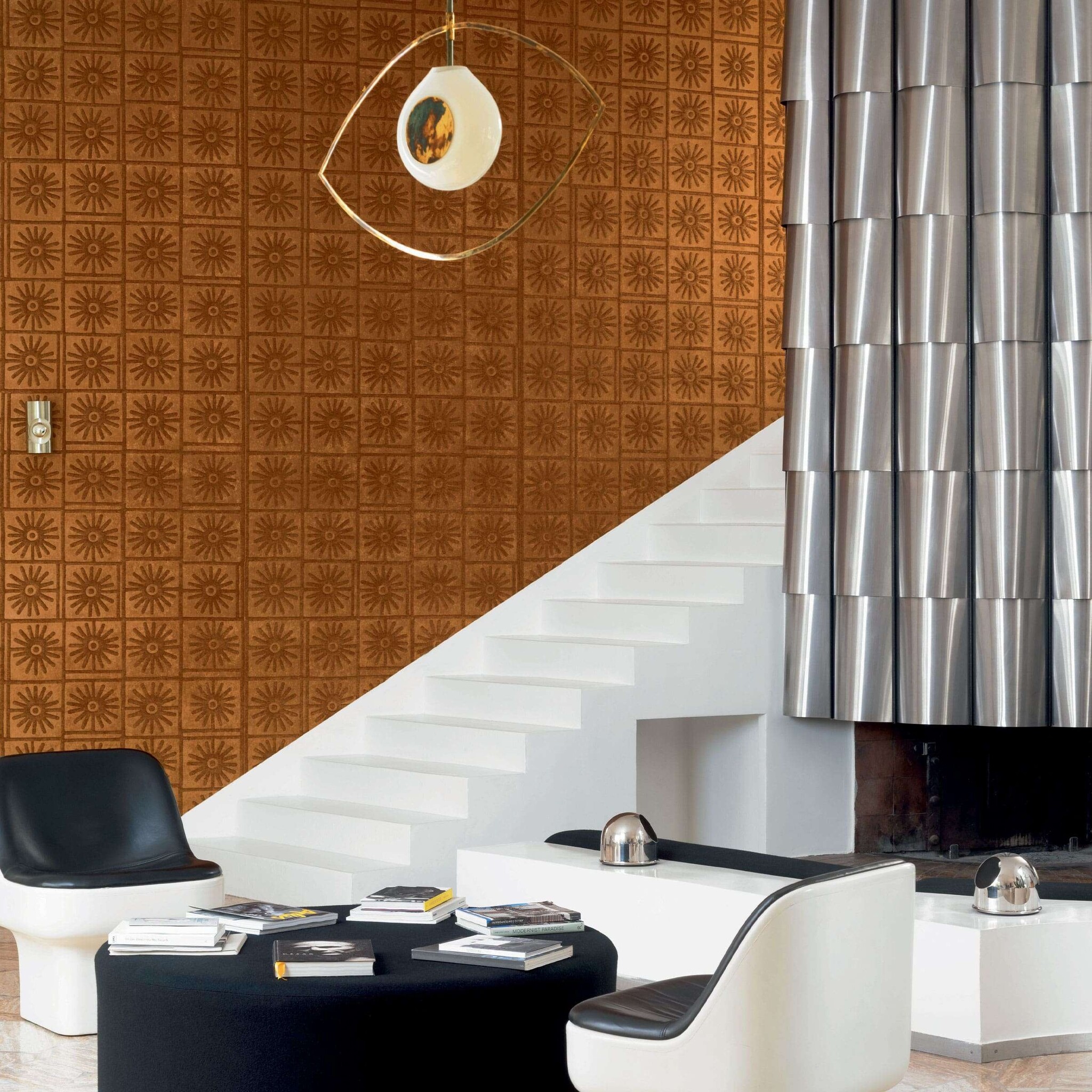 ELITIS Helios behang is gemaakt van chenille en is warm en glanzend en geeft een fluwelen touch aan je muren. De stralende 3D in dit behang komt tot leven door deze bijzondere vormen onder de stof te ‘sculpten’ met een mix van katoen en wol.