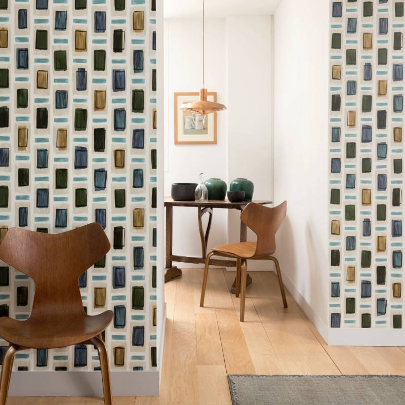 Het ELITIS Ornements behang geeft een abstracte sfeer aan je interieur en lijkt op een groot schilderij. Het behang heeft een print met verschillende vormen. Dit behang past perfect in een modern interieur.