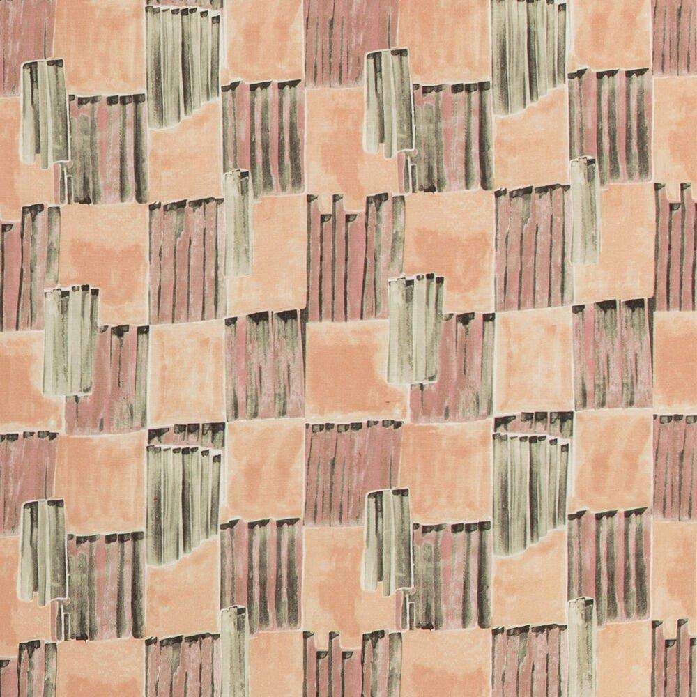 Lyre-stof van Kelly Wearstler: een ritmisch patroon van dansende vierkanten op vlas. Perfect voor gordijnen of kussens.