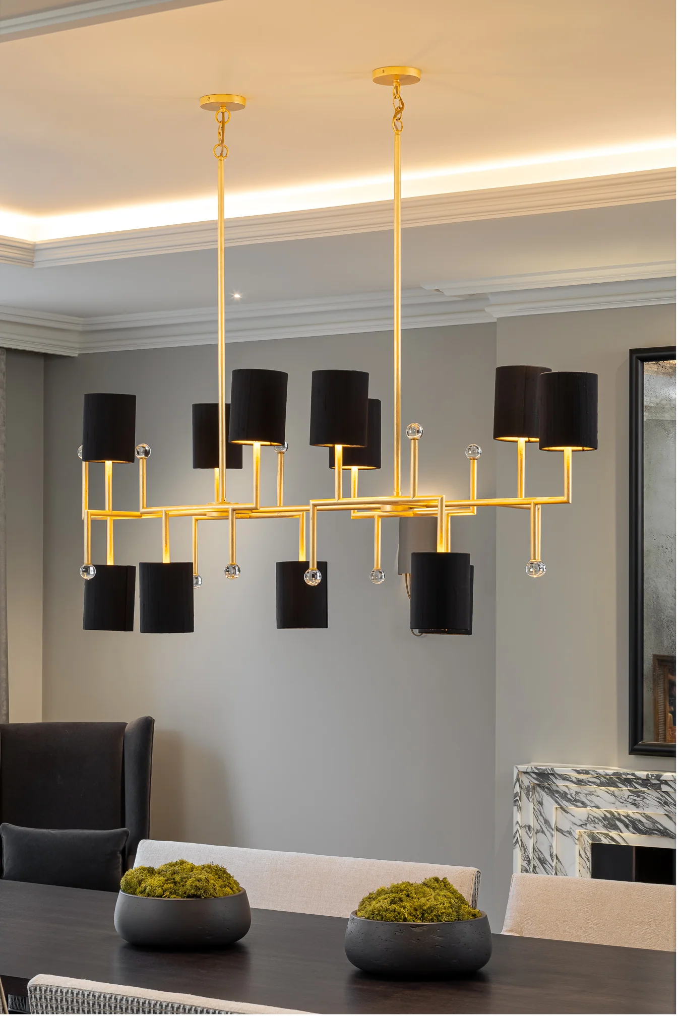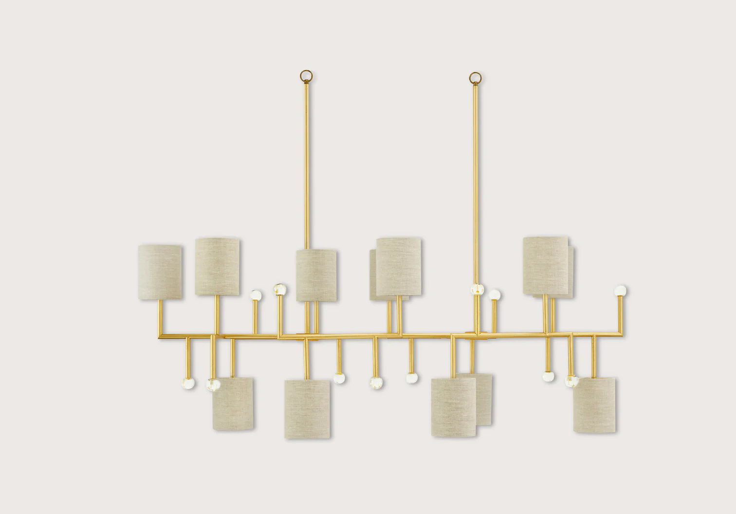 Een wetenschappelijk experiment in kroonluchtervorm. De Quantum is lineaire poëzie; een complexe structuur van horizontale en verticale stutten die met elkaar zijn versmolten om een elegant kader te creëren, onderbroken door heldere glazen bollen voor een dynamisch contrast.