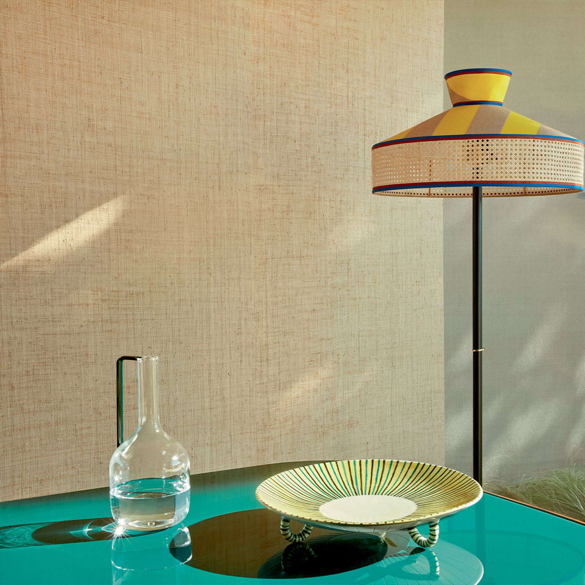 | Materiaal | Raffia en vliesbehang (non-woven wallcovering) |
