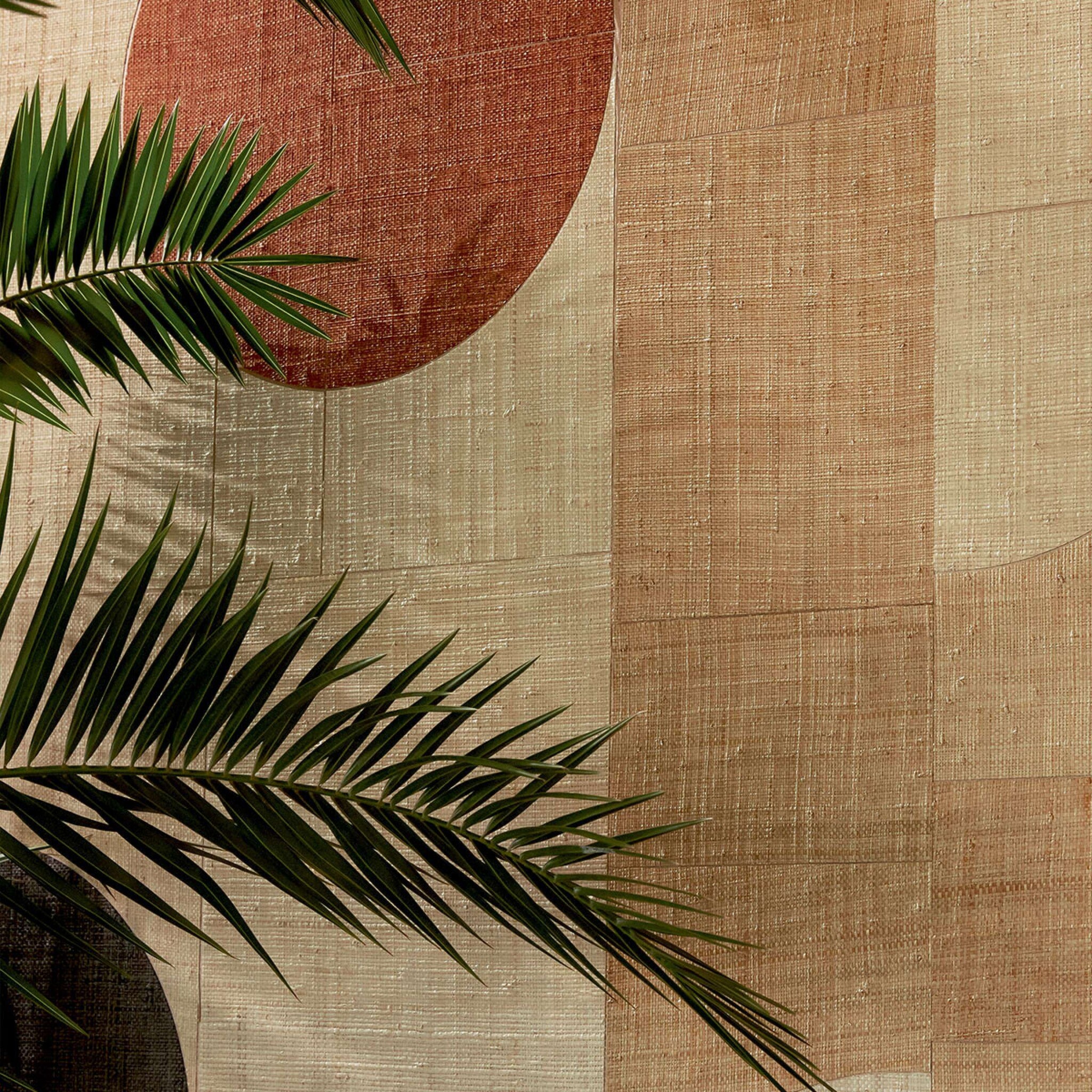 Sol behang van Elitis. Dit behang is een handgeweven raffia met een retro patroon dat een panelenset vormt. Creëer een natuurlijke beleving met dit opvallende geweven raffia behang. Behang Sol van Elitis uit de Merida collectie.