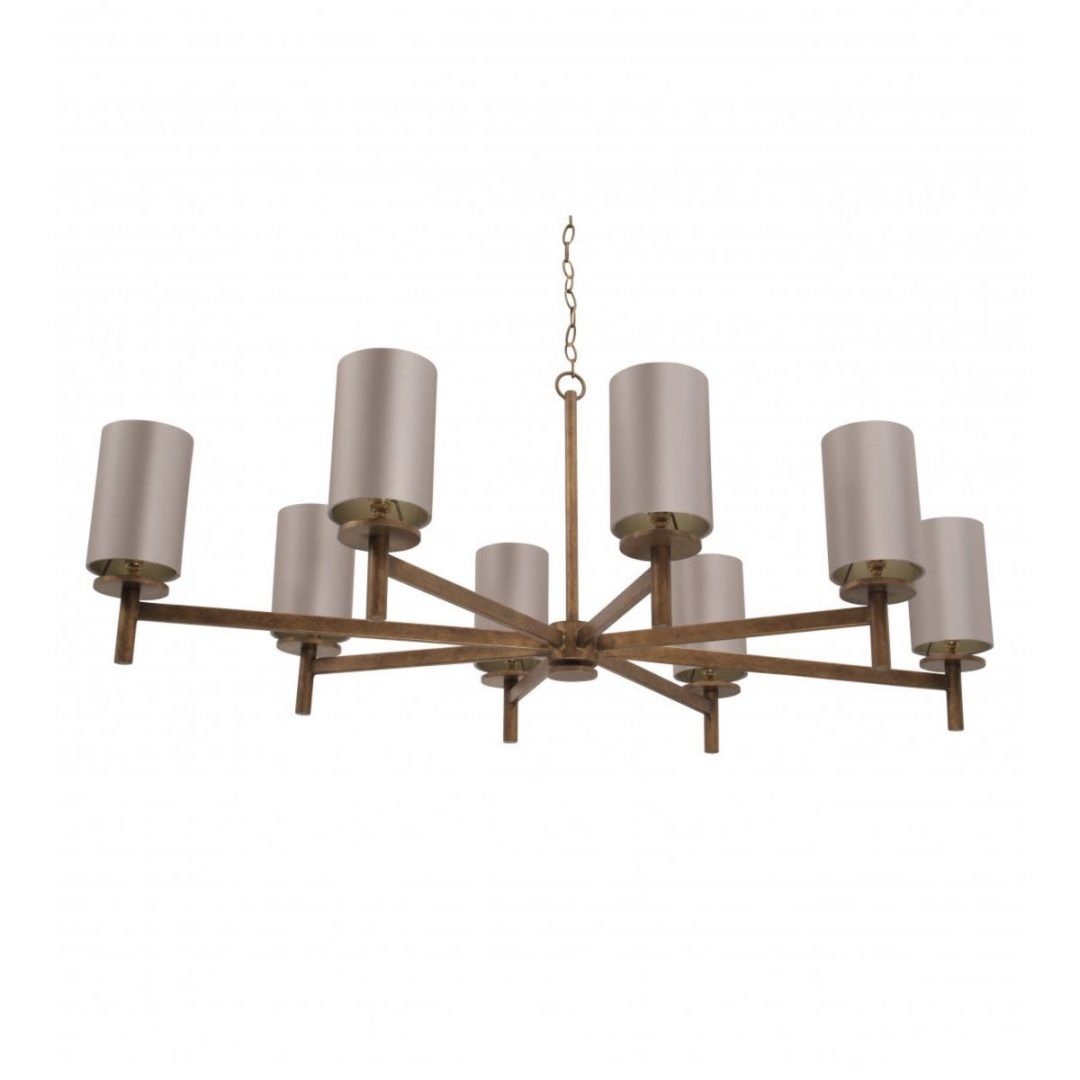 Een grootschalig armatuur in gesmeed staal dat groots is in verhoudingen en middeleeuws van karakter. Een raamwerk van lineaire stutten en cilindrische vormen, creën samen een perfecte geheel.