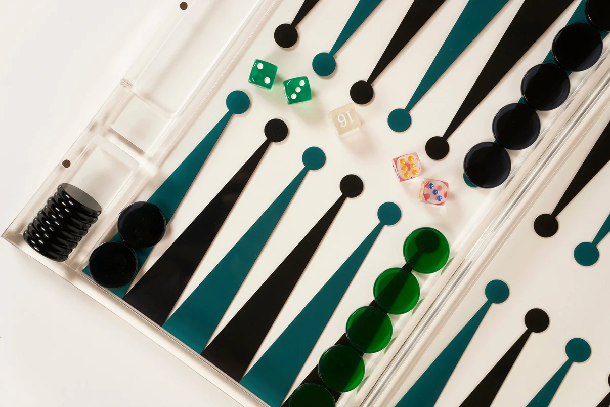 Speel Backgammon overal in stijl met deze draagbare acrylset. Compleet met resin dobbelstenen, magnetische sluiting en geïntegreerd handvat.