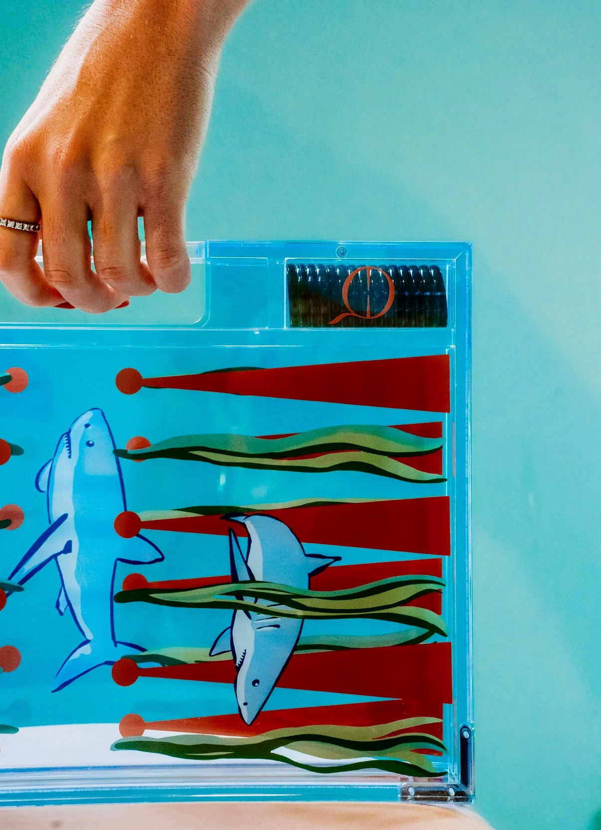 Portable Backgammon Sharks – Luxe Draagbare Backgammon Set met Uniek Shark-Design (38,5 x 23,3 cm)