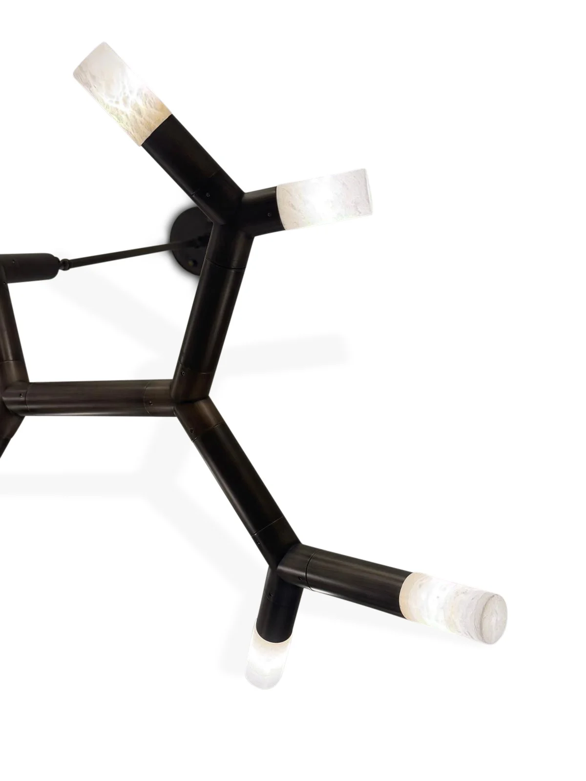 De SCOTT Chandelier is een meesterlijk vormgegeven hanglamp die sculpturale klasse combineert met subtiele verlichting. De combinatie van Smoke Bronze met verfijnd alabaster zorgt voor een warme, uitnodigende sfeer in elke ruimte.