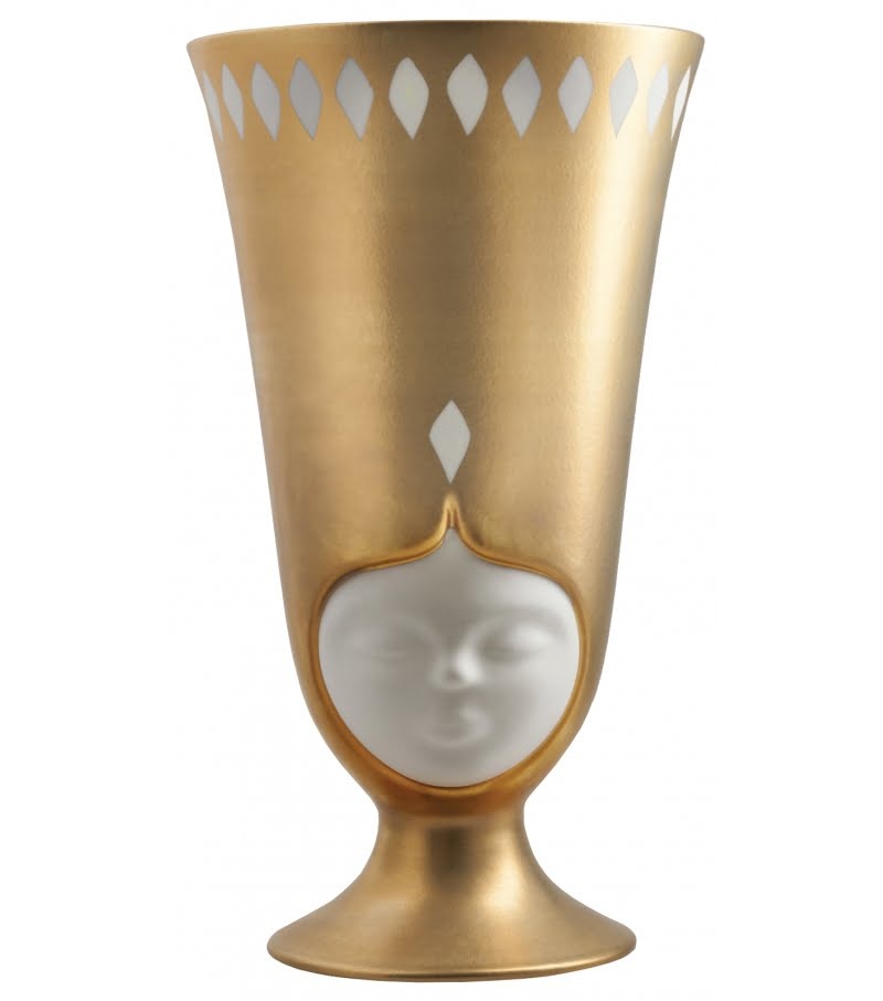 Sisters Thai Sofia ontworpen door Pepa Reverter voor Bosa ,is een vaas in met de hand afgewerkt wit keramiek en mat goud met elegant design. Deze maakt deel uit van de Sisters Thai collectie bestaande uit 4 andere vazen.