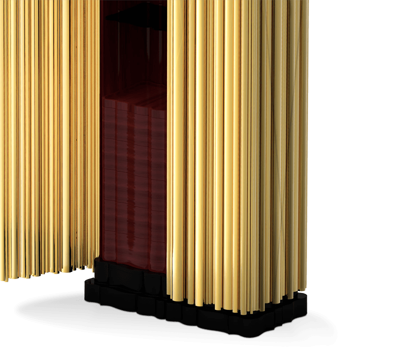 De Symphony Cabinet is geïnspireerd door de beweging en evolutie van muziek, van de natuurlijke stroom van geluid tot de verschillende tijdperken en stijlen. Door de belangrijkste ontwerpelementen van kerkorgels, violen en de details van koperblazers opni