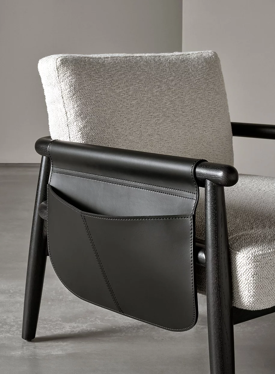 Teresa is een veelzijdige fauteuil met een eikenhouten frame. Verkrijgbaar in een zachte, gestoffeerde versie of als ‘Kuoio’ met een strakke zadellederen afwerking. Optioneel met een stijlvolle opbergtas, perfect voor elk interieur.