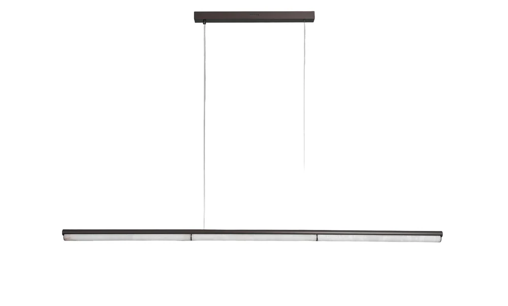 De Viglia kroonluchter combineert lineair design met warm albast licht. Ideaal boven een lange eettafel of kookeiland en zorgt voor een rustige, luxe sfeer met perfect gebalanceerde verlichting.