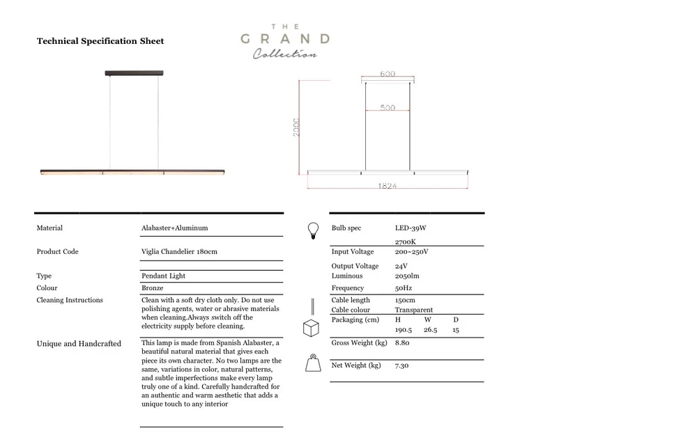 Viglia Design Hanglamp – Lineaire Kroonluchter met Albast