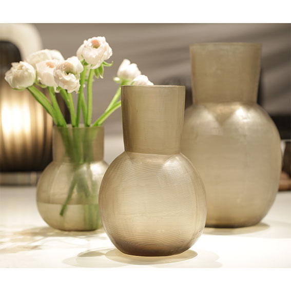 Kruikvormige glazen vaas in de kleur 'smokegrey' Verkrijgbaar in meerder maten, leuk als een set!